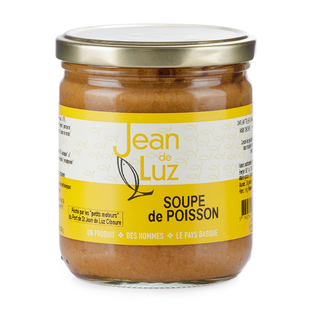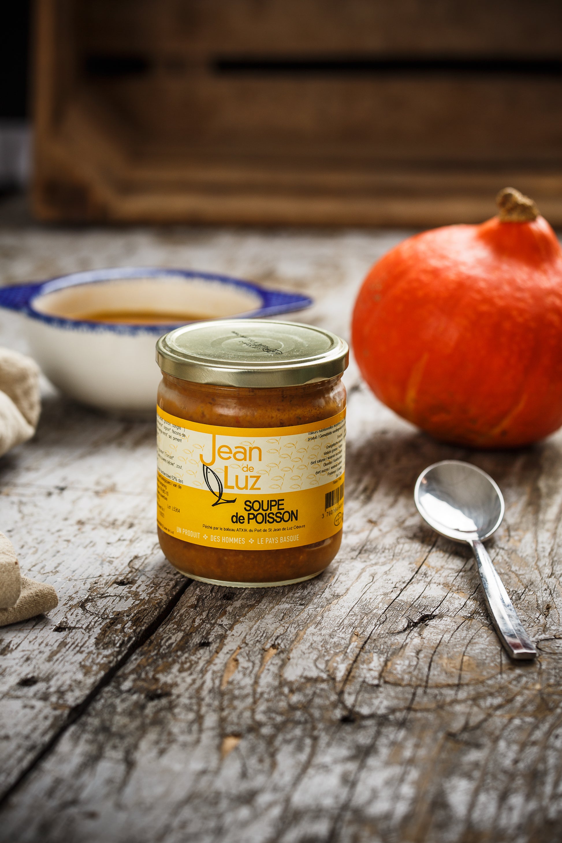 Ingredients: various fish 47%, organic onions 12%, organic pumpkin 12%, organic tomatoes 12%, organic potatoes 12%, organic extra virgin olive oil 5%, organic salt 0.3%, organic AOP Espelette pepper 0.1%, organic agar agar 0.04%